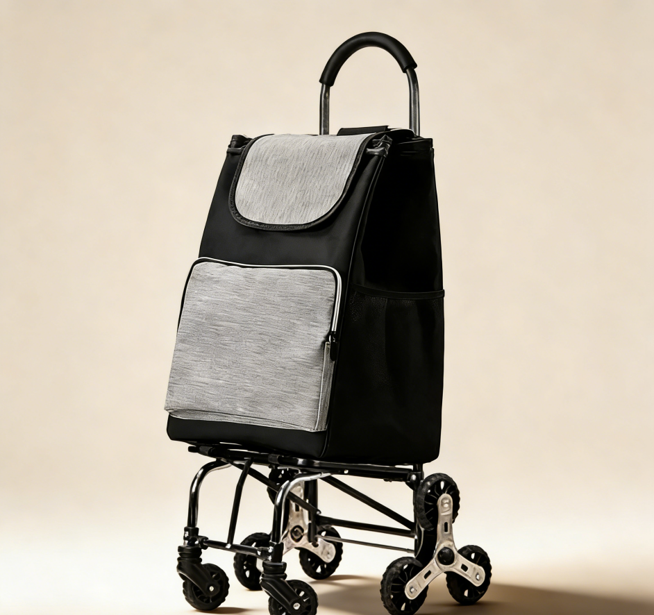 Designed for urban dwellers who love life and value efficiency. The sporty and trendy design features a lightweight alloy frame for quick folding, resulting in a slim profile that easily fits into a car trunk or a corner of your home. The large-capacity, waterproof shopping bag is made of durable coated fabric, and the seamless heat-sealed construction ensures it’s completely waterproof, so you don’t have to worry about shopping in the rain or carrying frozen food. The trolley’s center of gravity is intelligently designed, making it especially easy to use on stairs. Simply lift it slightly and use the ergonomic handle for smooth pulling, eliminating the struggle of carrying heavy objects. It’s your reliable assistant for navigating farmers’ markets and apartment buildings.